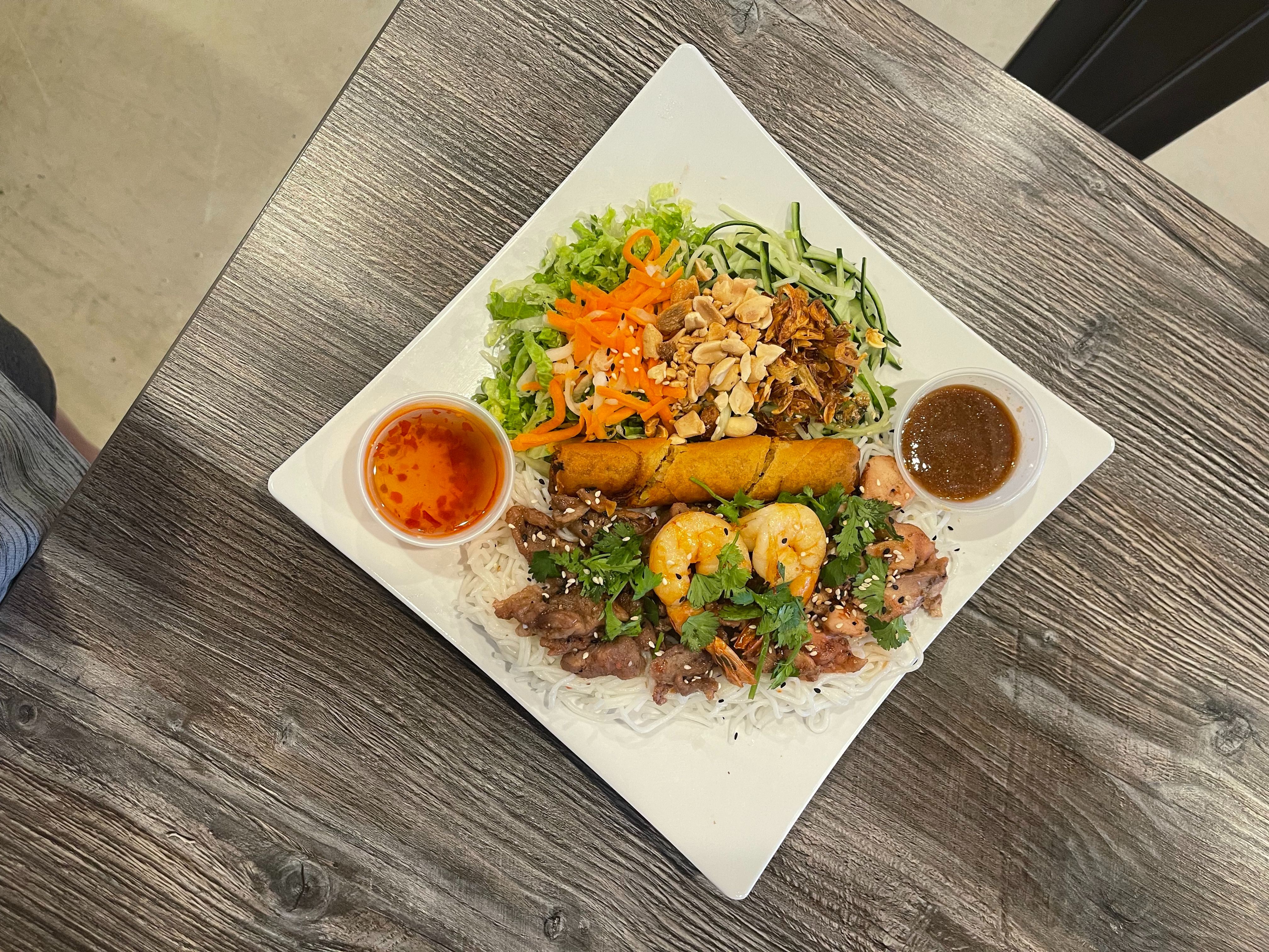 - Egg Roll - 2 Grilled Shrimp - Grilled Pork & Chicken
