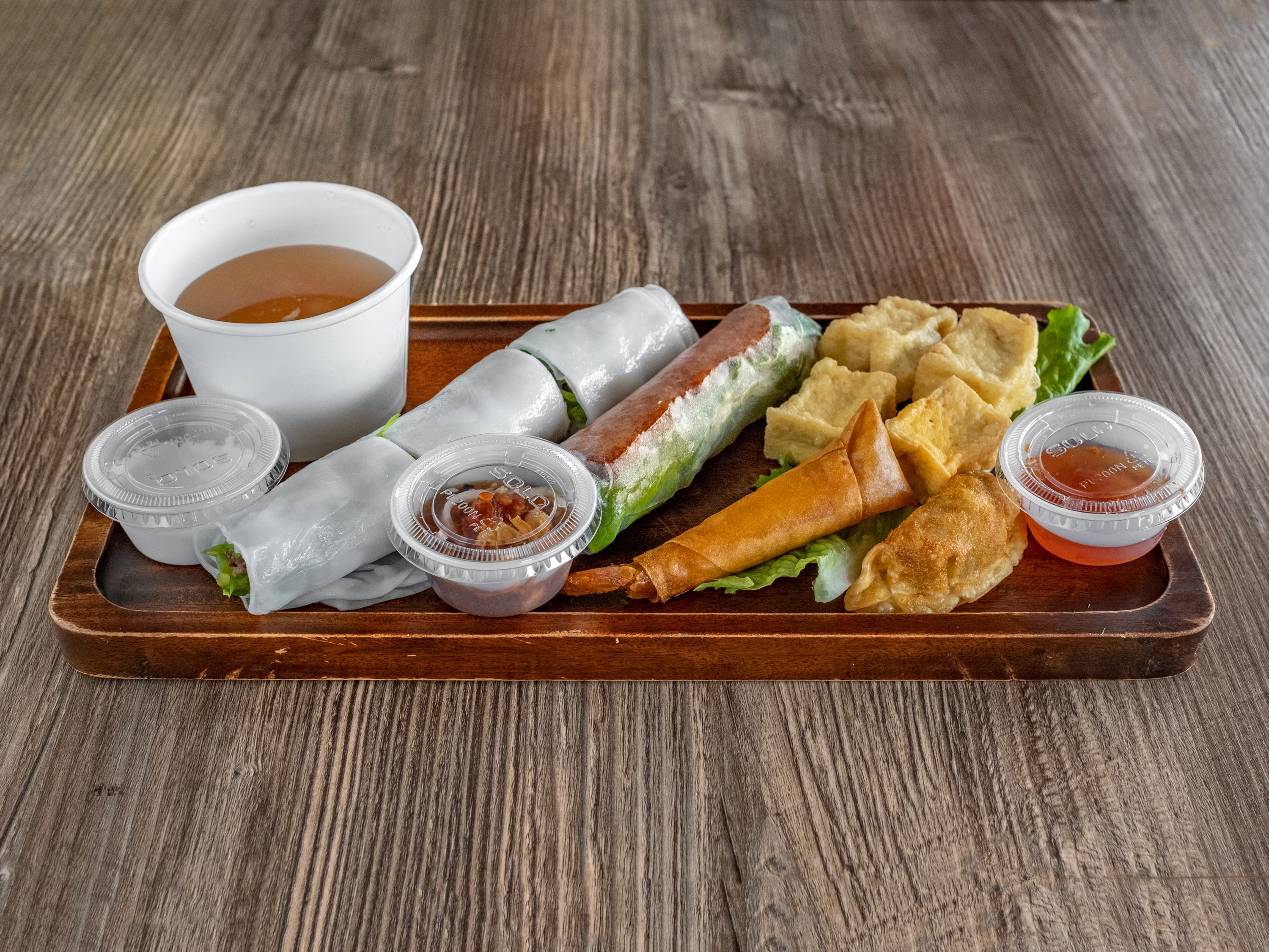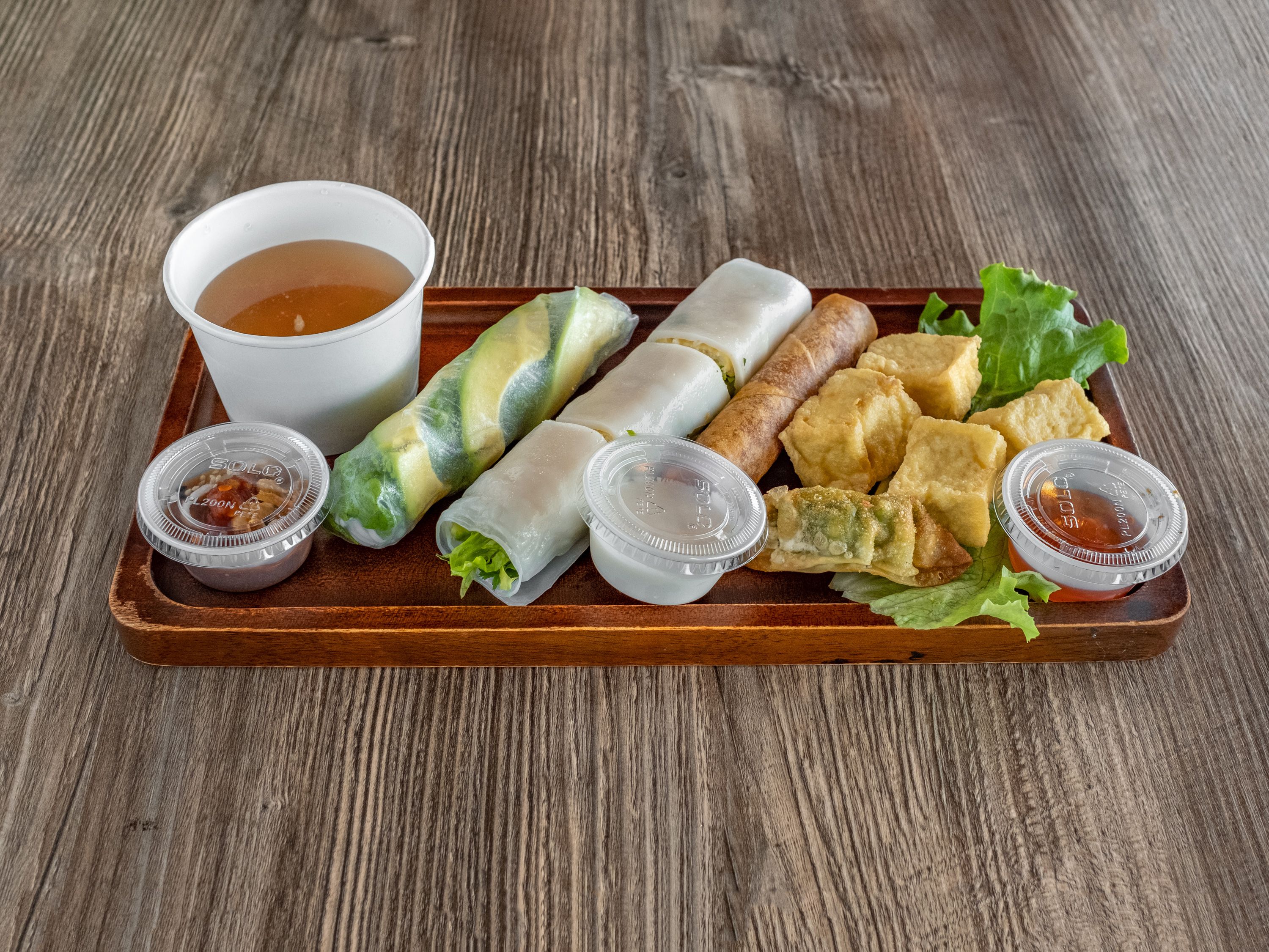 - Crispy Tofu Pho Roll - Avocado Spring Roll - Vegan Egg Roll - Vegan Dumpling - Crispy Tofu (4) - Vegan Soup - Hot/Cold Jasmine Tea