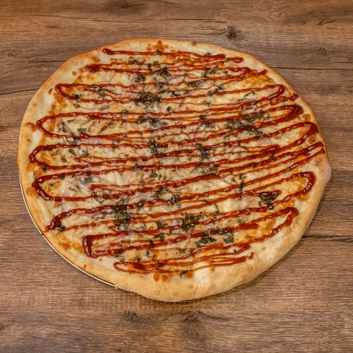 Mozzarella, grilled chicken, BBQ sauce, red onion, cilantro