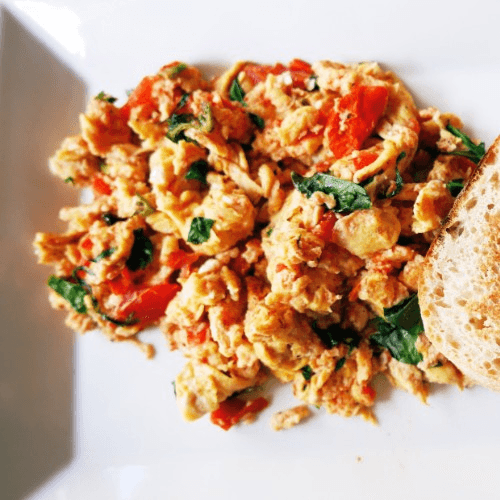 2 Eggs Scrambled with Onion, Tomato, and Serrano Peppers. Accompanied with Rice, Beans, and Handmade Corn Tortillas.