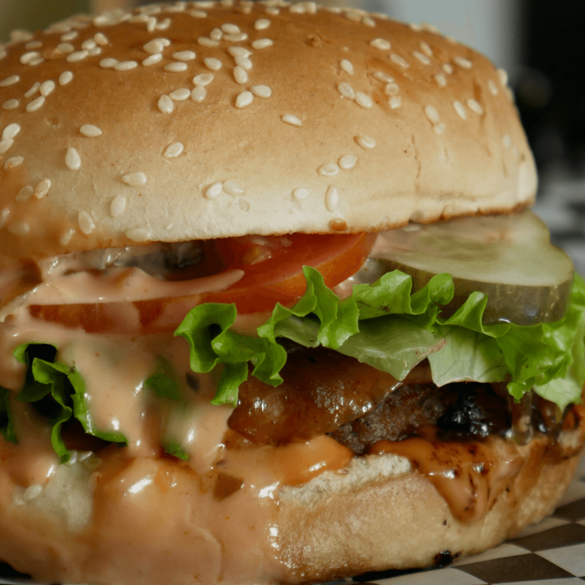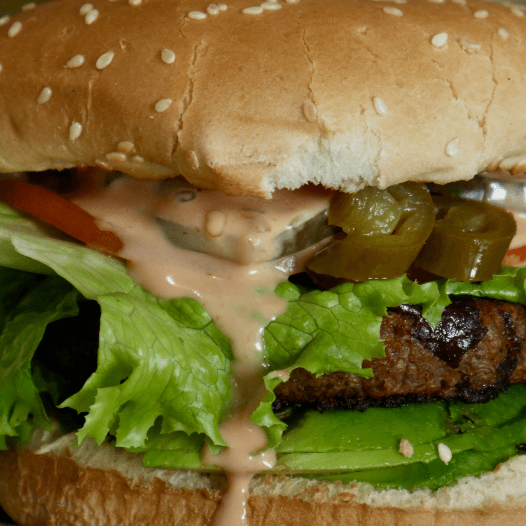 Avocado, lettuce, tomatoes, pickles, spicy jalapeños Beyond patty topped with Russian dressing
