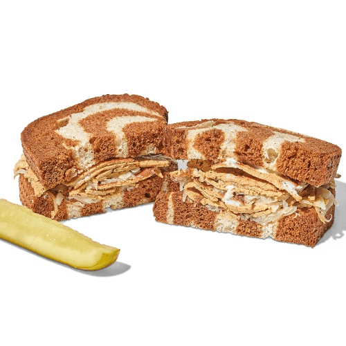 Plant based corned beef, Swiss, sauerkraut, Russian dressing; Allergens: Soy, Gluten