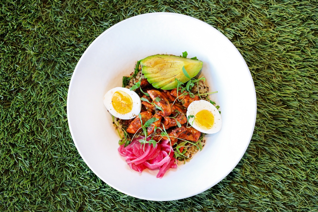 chicken al pastor, chato’s salsa verde, pickled red onions, soft boiled egg*, avo, arugula, warm quinoa, baby cilantro