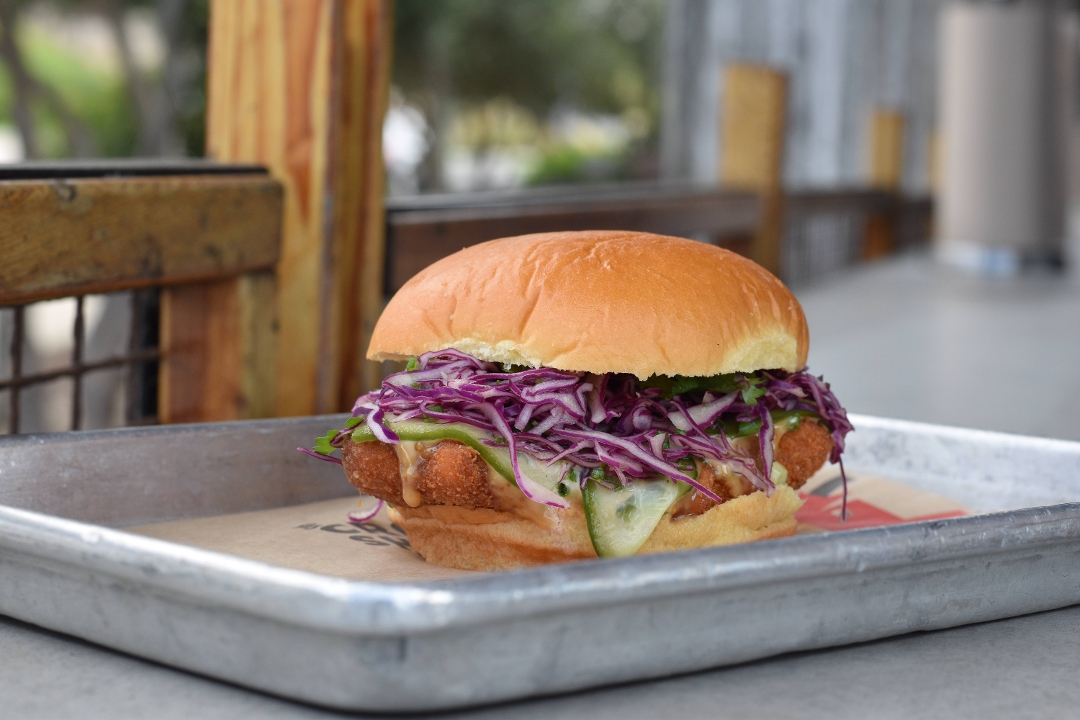 fried breast, cabbage slaw (pickled fresno chiles, pickles, lime mayo), artisan brioche