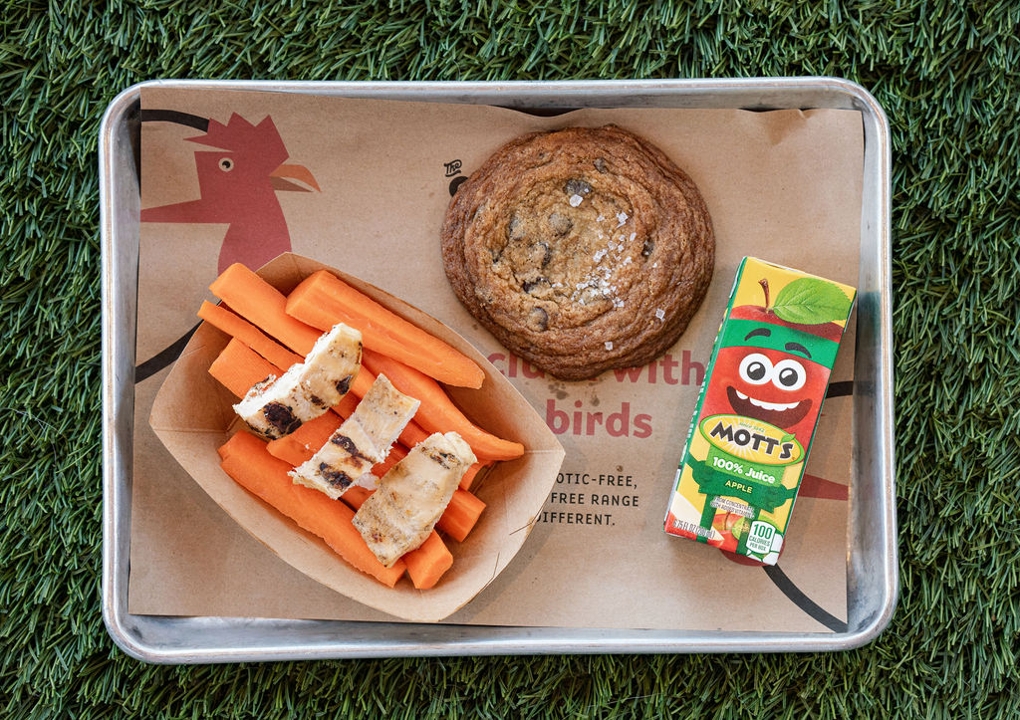 half bird bone-in fried chicken, large fry, classic slaw, mini biscuits, chicken nuggets, choice of 2 cookies