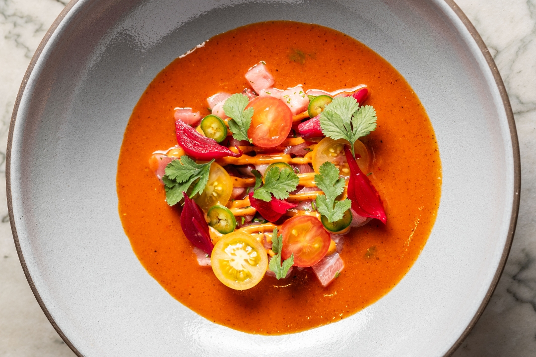 Bluefin tuna, serrano, chipotle crema, pickled onions, blue corn tostadas