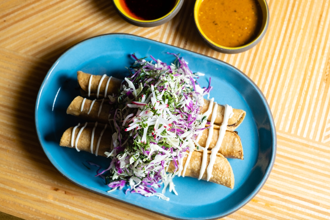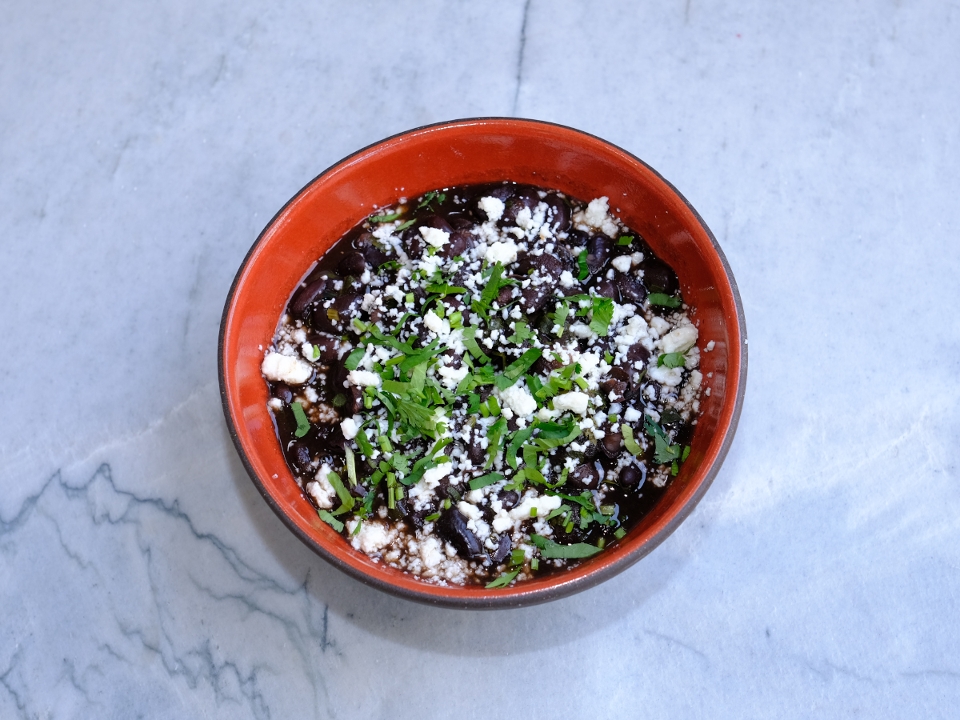 Squash, traditional black beans, zucchini, salsa verde, salsa cruda, cilantro aioli, zucchini chips (GF, V)