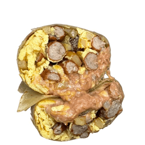 eggs, sausage, beans & cheese