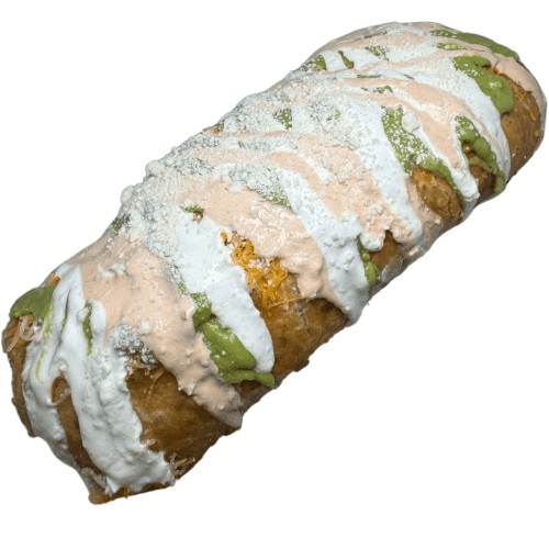 Carne Asada, Tocino, Mexican Salsa, Guacamole, Sour Cream, Chipotle Sauce, Cheese, Fries, Deep Fried.