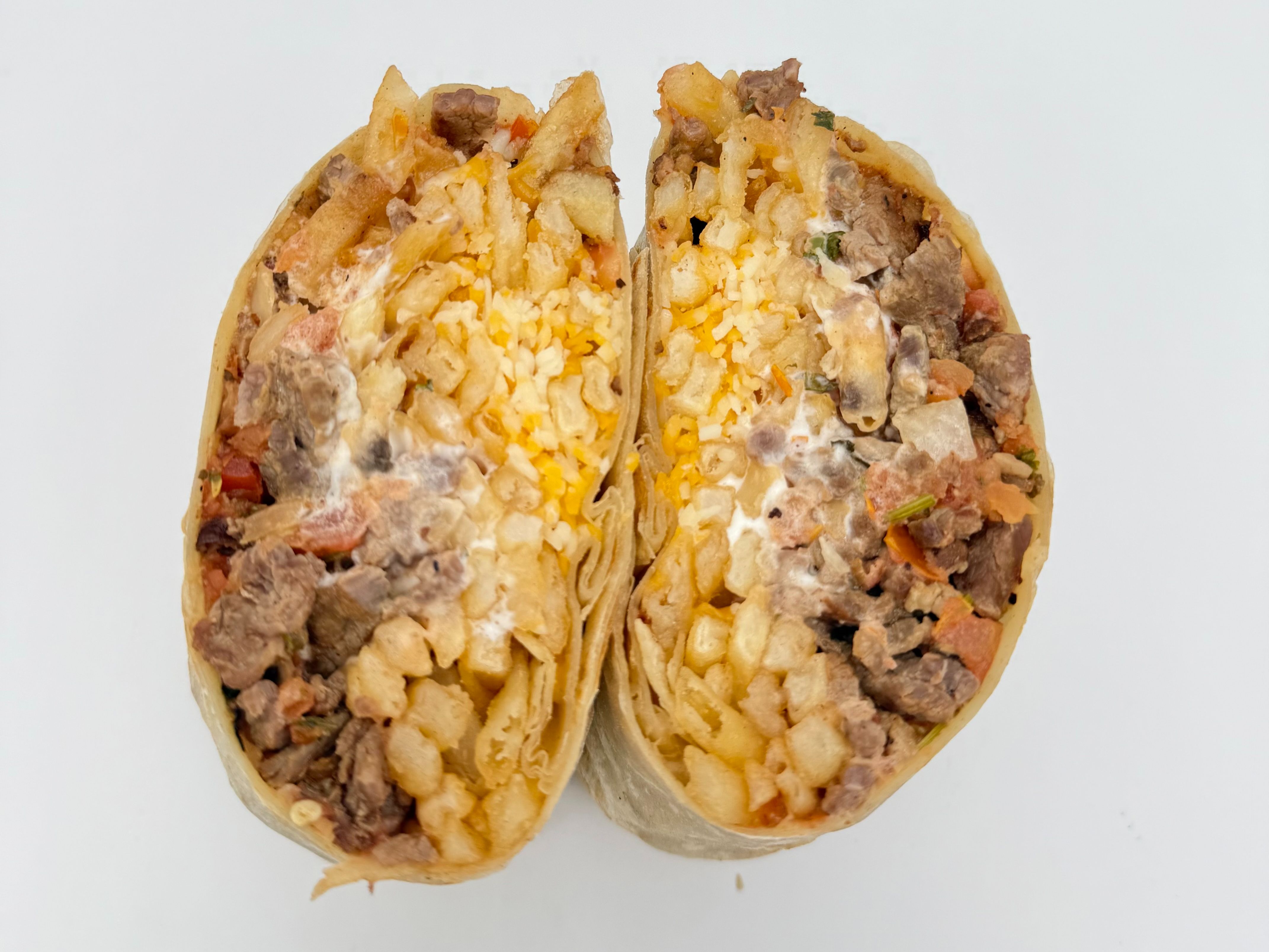 Carne asada, Beans, sour cream, guacamole & cheese
