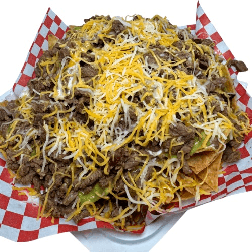 Carne Asada, Guacamole, sour cream, nacho cheese & hot cheetos