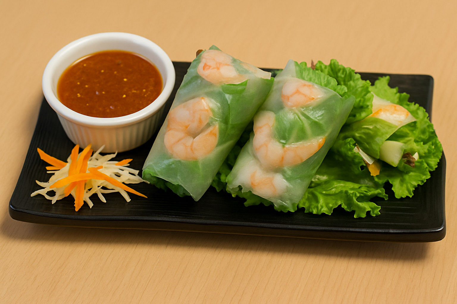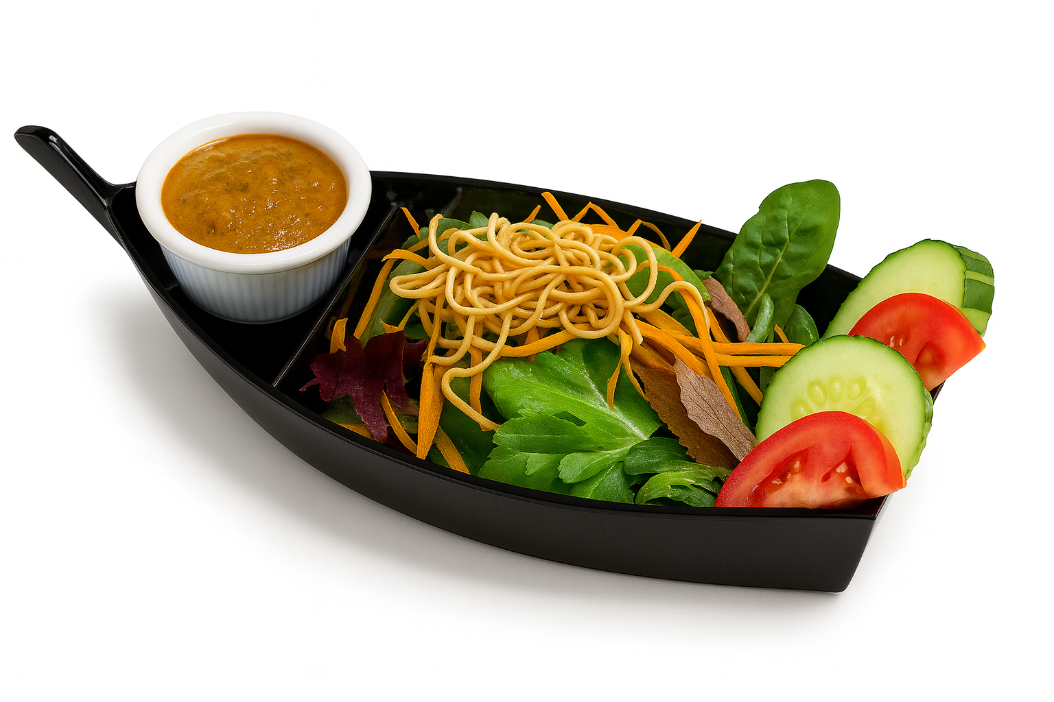 Spring mix salad, romaine lettuce, iceberg lettuce, sliced cucumbers, cut tomatoes, carrots. Served with our crafted peanut sauce mixed with our sweet vinegar dressing.