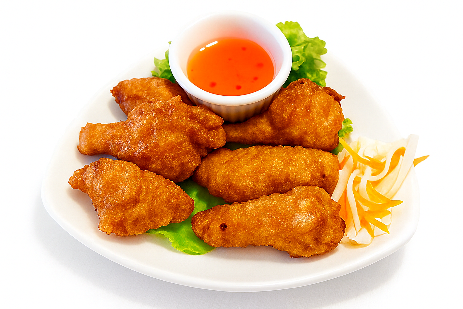 Lightly golden fried shrimp served with our delicious sweet chili sauce
