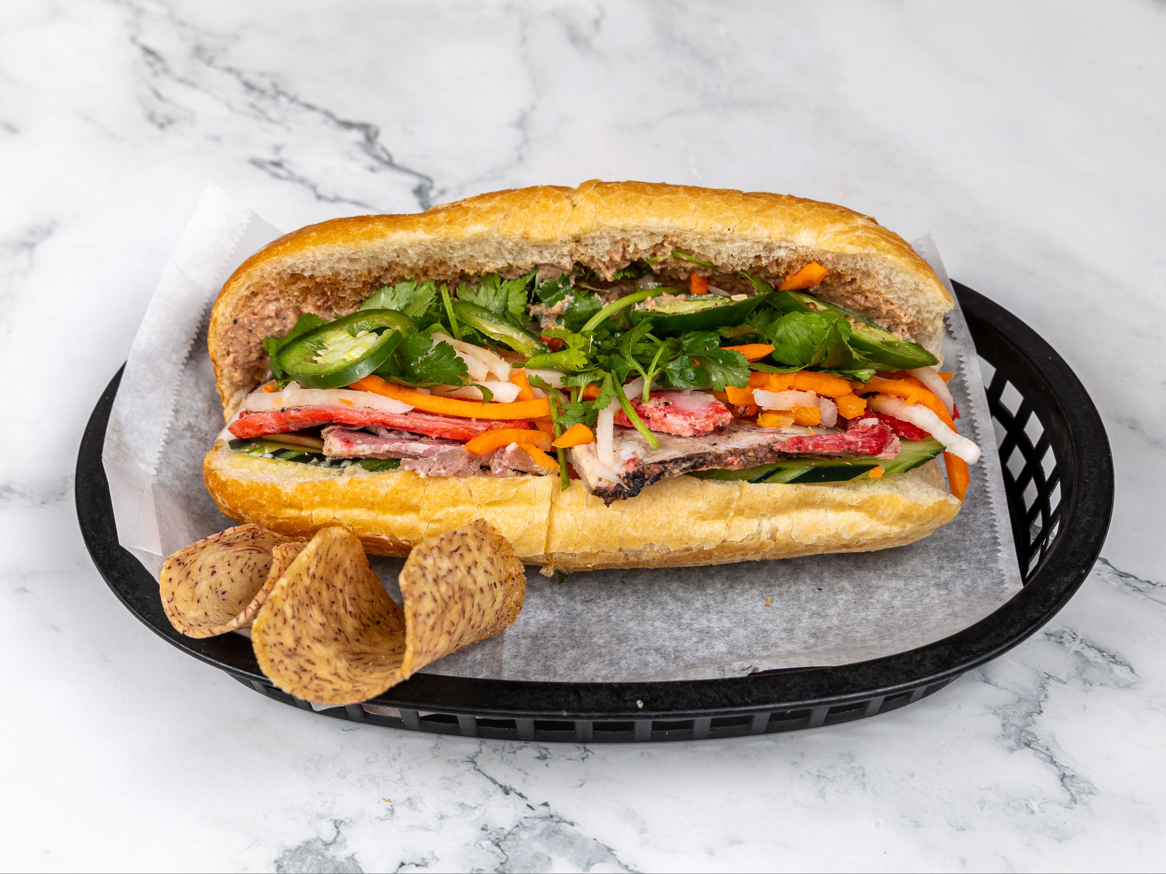 Vietnamese pork loaf, pork belly, jambon, braised pork, and pate