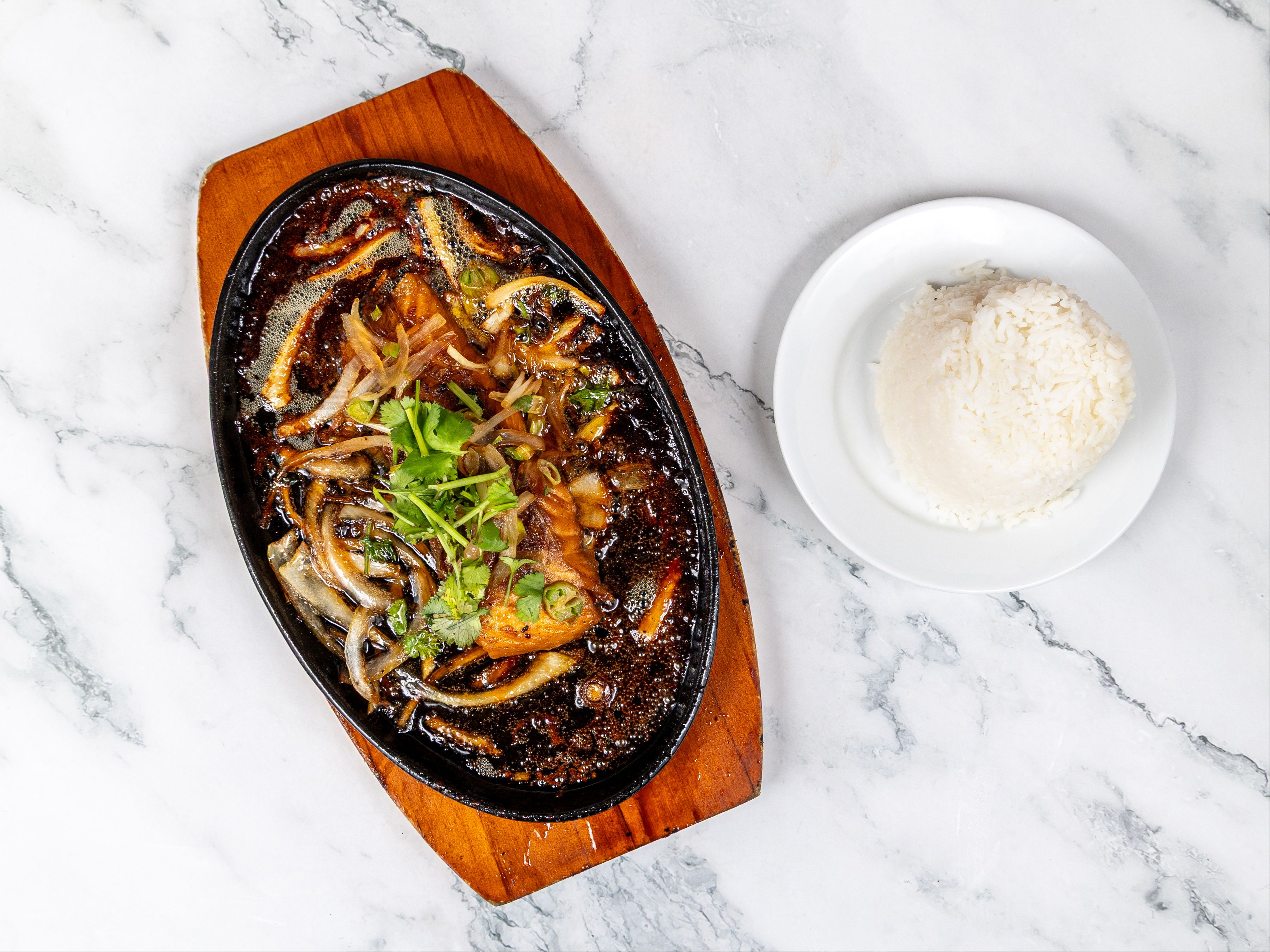 Tender seasoned porkchop, steamed egg patty, fried egg and salad