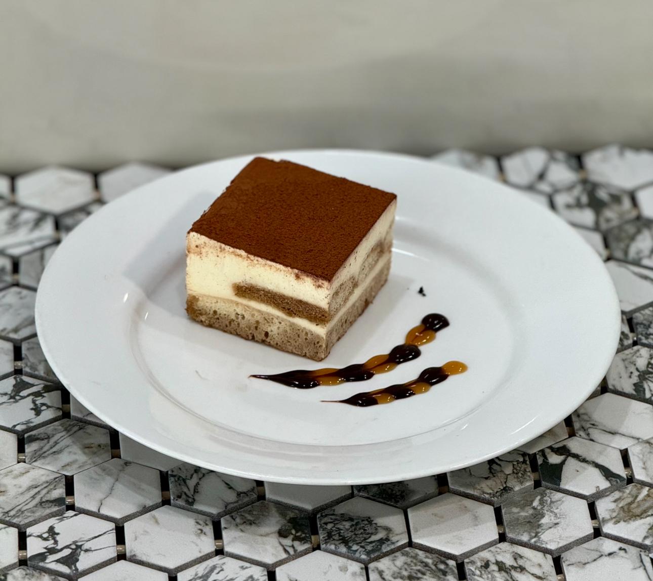 Smooth layers of Italian mascarpone cheese filling and coffee infused lady fingers, topped with Cocoa.
