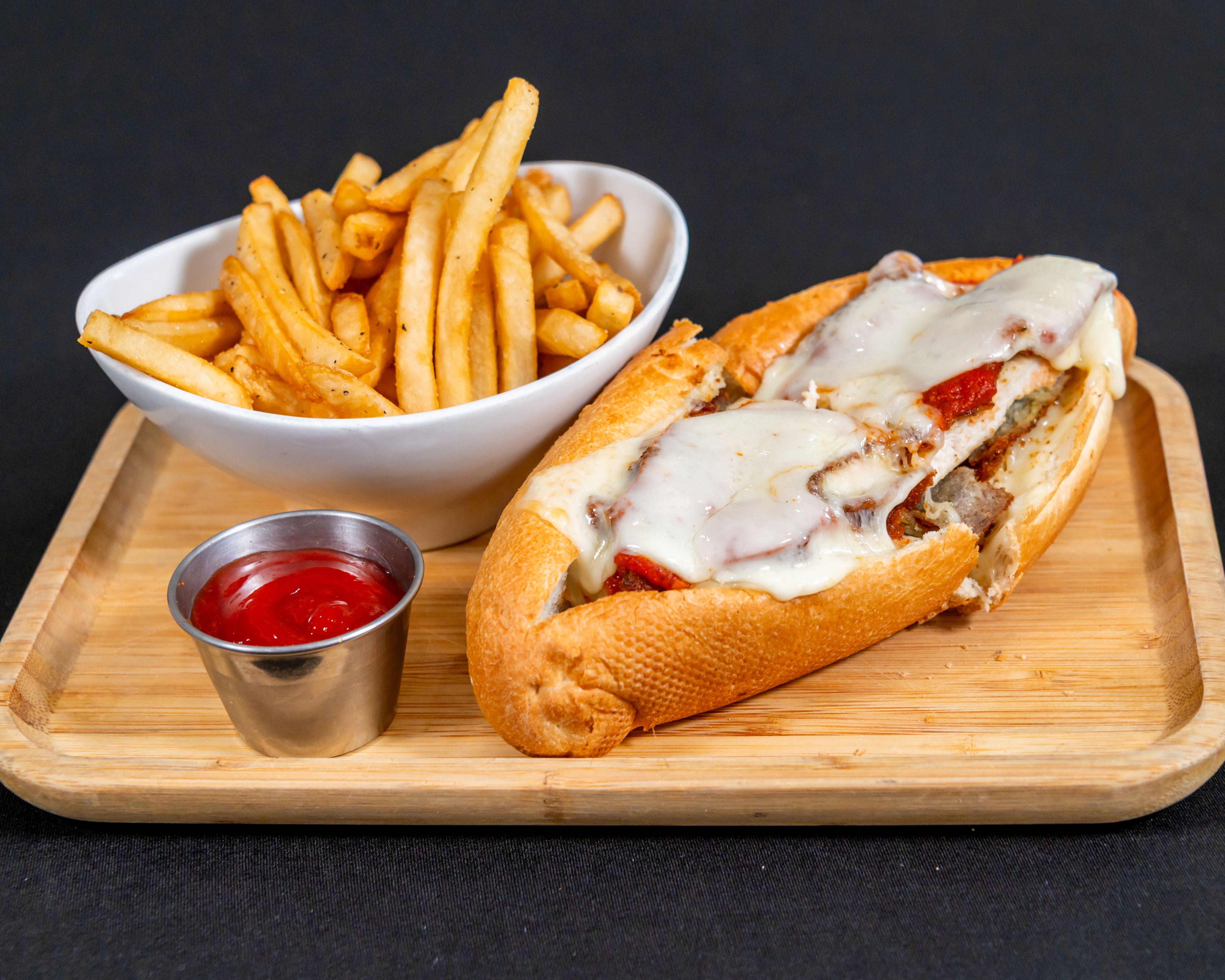 Breaded chicken fried then baked with marinara sauce and provolone cheese.