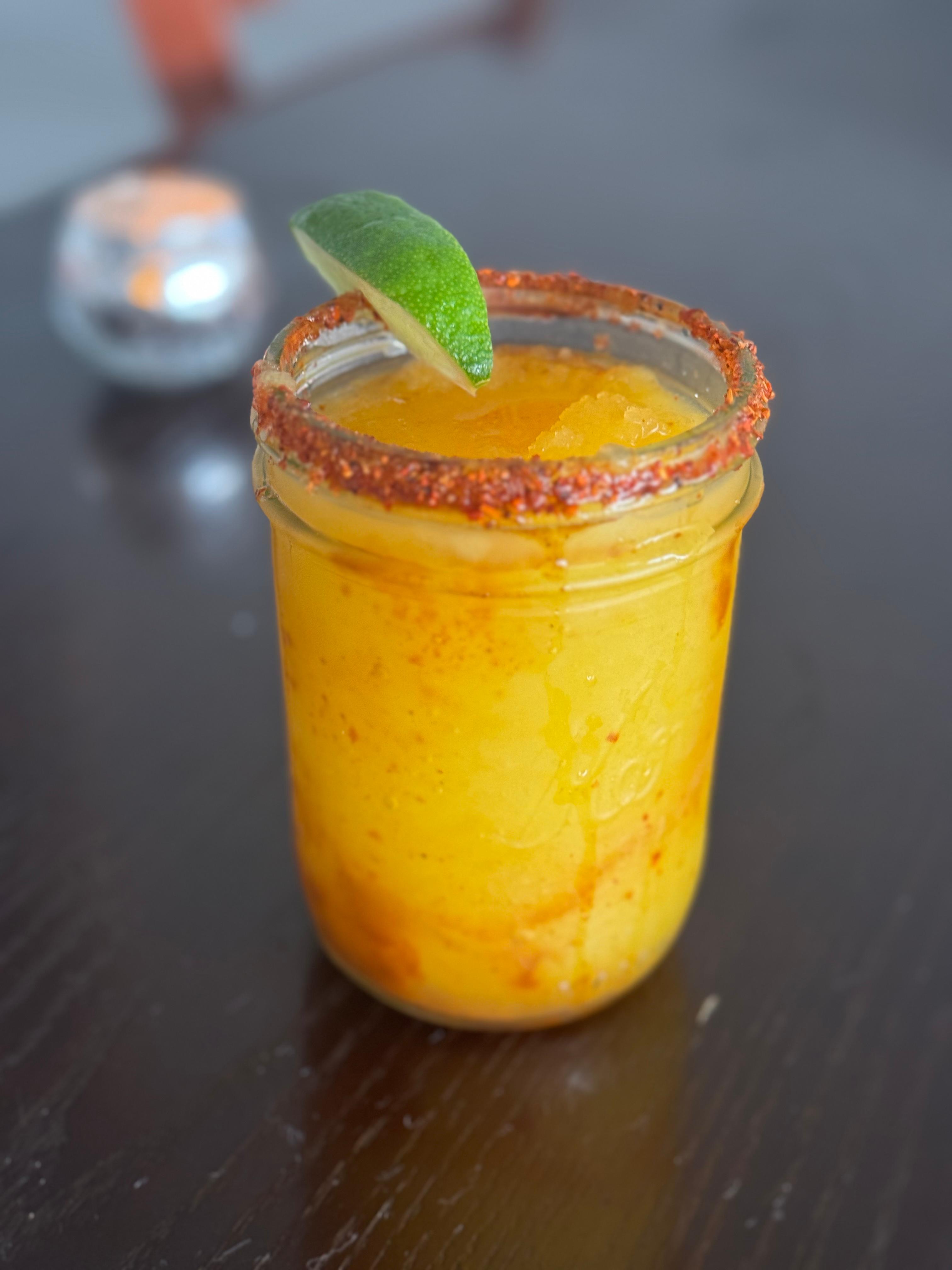 Mango pure blended with fresh squeezed lime juice, chamoy and tajin. Served frozed.
