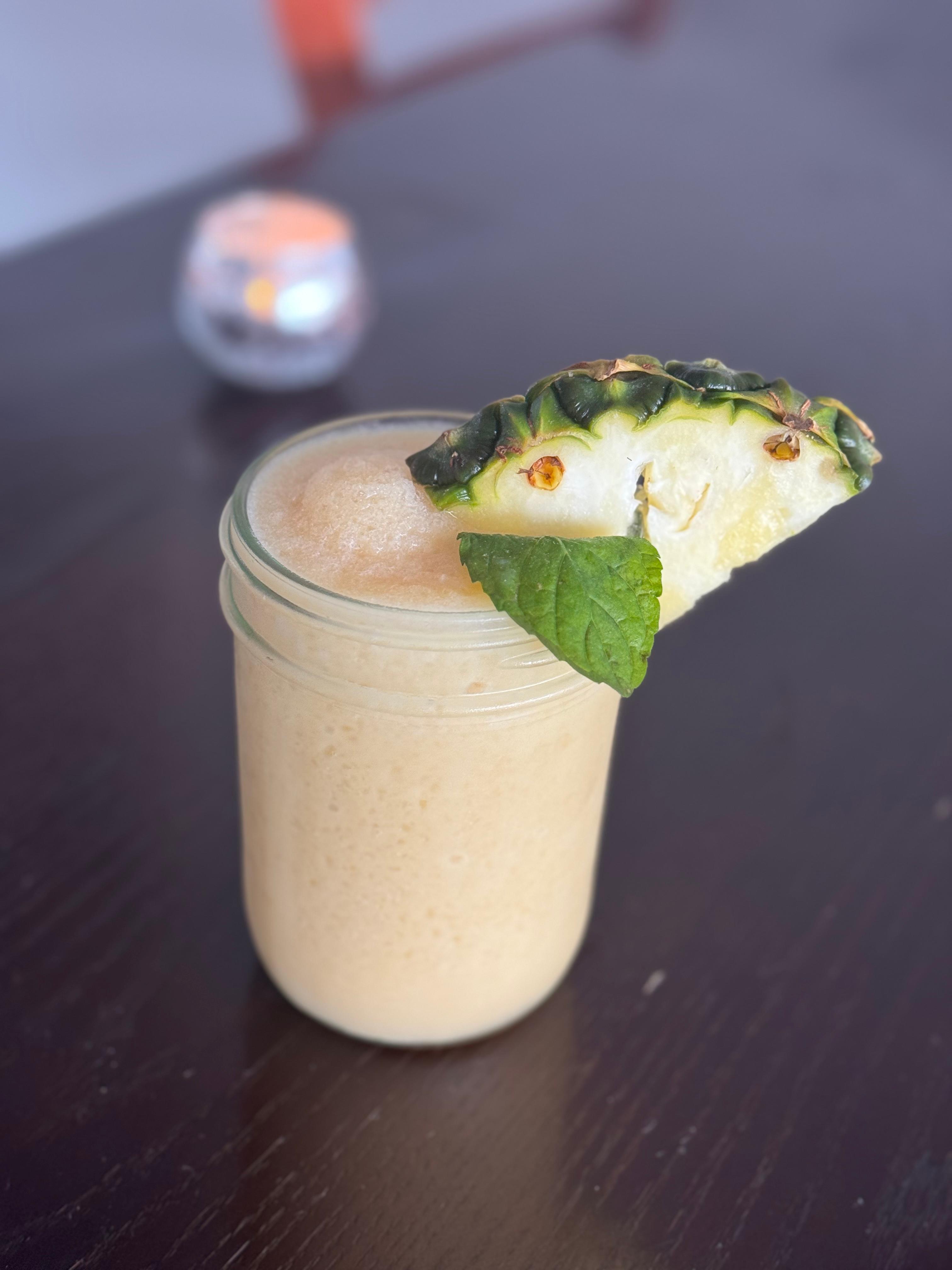 Pineapple juice, coconut cream, dulce de leche and ginger beer. Served frozen