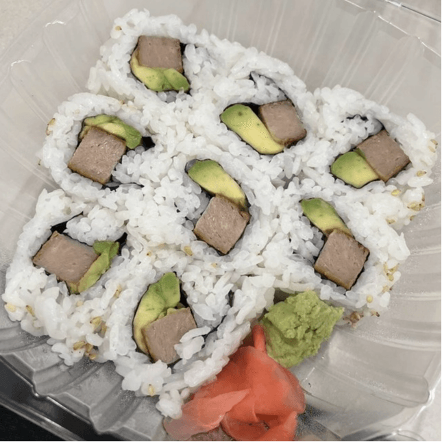California roll topped w/ tuna, seaweed salad, & poki sauce