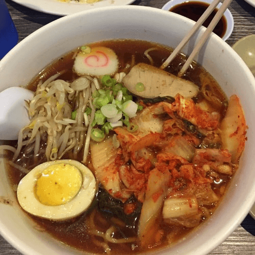 Deep fried breaded pork, eggs and veggies simmered together in sweet Japanese stock. Served with rice and a small salad.