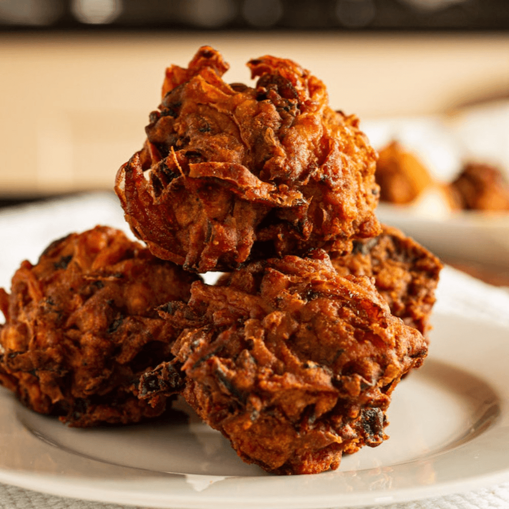Corn and spinach pakoras are crisp, deep‑fried fritters made with sweet corn, fresh spinach, and spiced gram‑flour batter. They deliver a warm, crunchy bite with a mix of sweetness, earthiness, and aromatic seasoning.