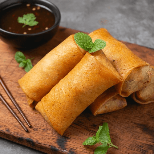 Vegetable stuffed rolls , deep fried to crisp. Served with sweet chili sauce