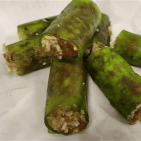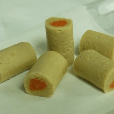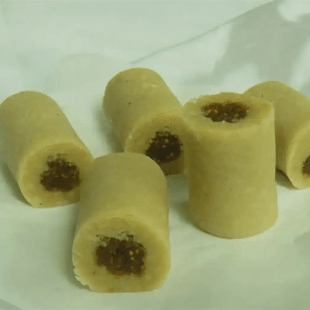 Steamed chick pea rolls seasoned with mustard and sesame seeds.