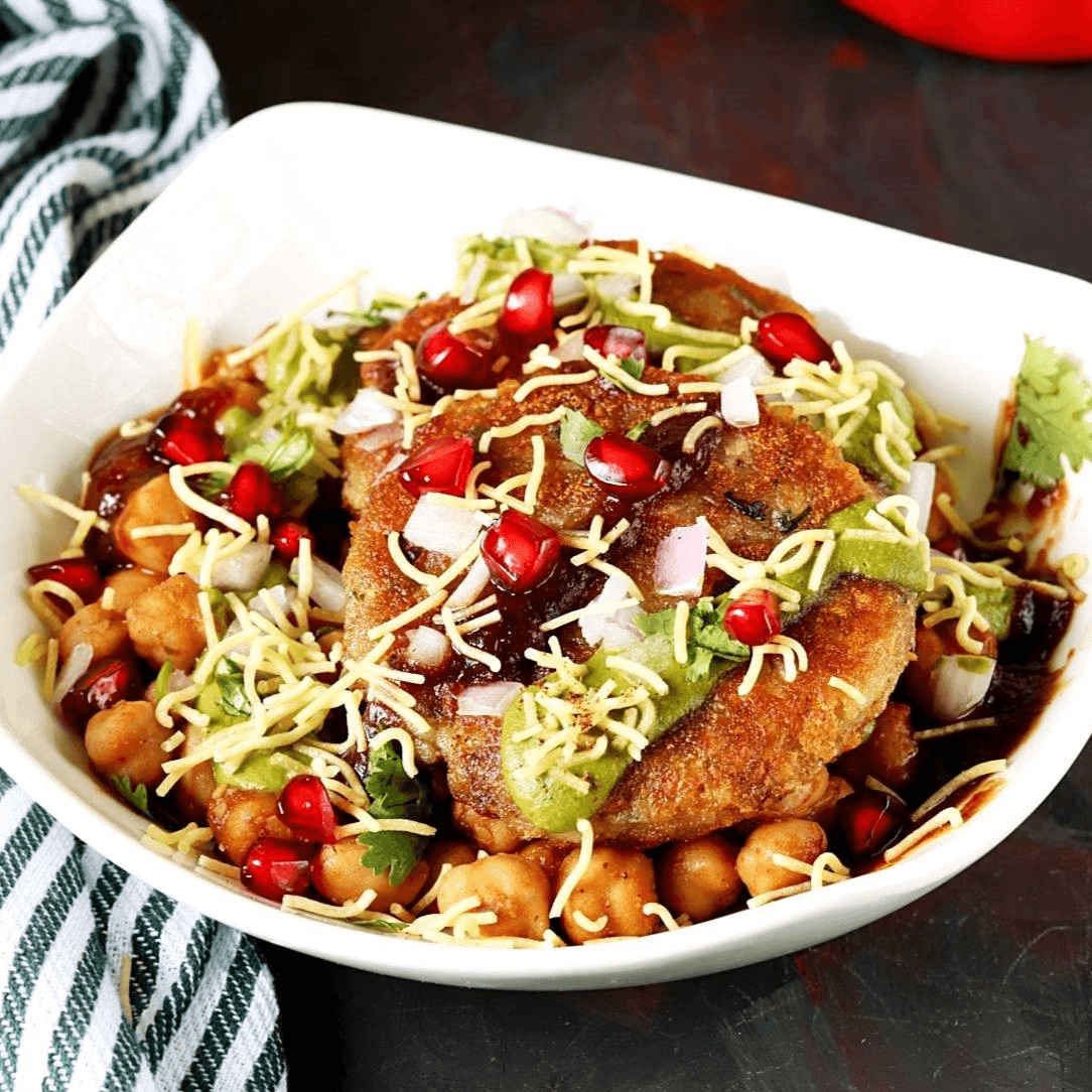 2 pieces of Potato patty served with Chana masala, Chutneys and Gram Noddles.