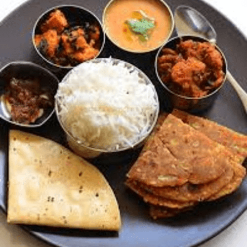 This Combo comes with: 1. Pooris (10pcs) 2. Chana Masala 3. Surti Undhiyu/Paneer curry 4. Aloo Curry 5. Aam Ras 6. Shrikhand