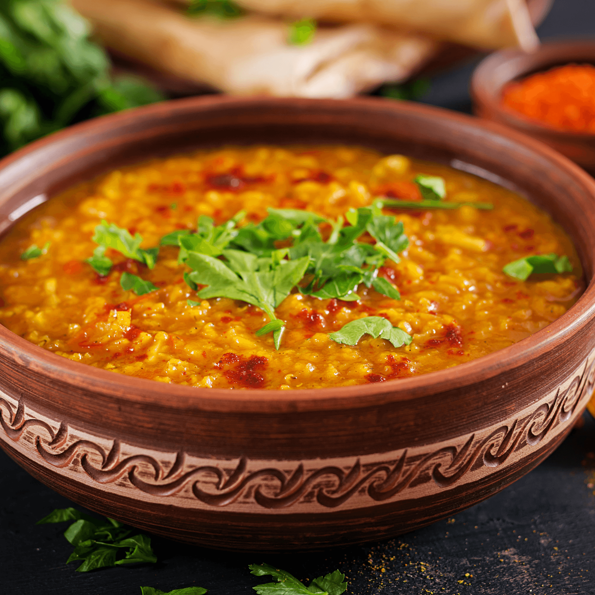 8oz of Daal (Lentil Soup) and 8oz of Plain rice combo.