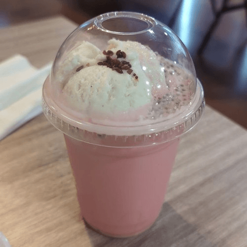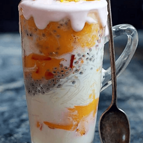 Rose milk, vermecelli, chia seeds and vanilla icecream