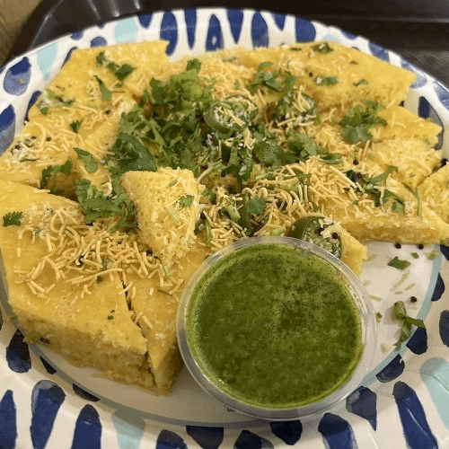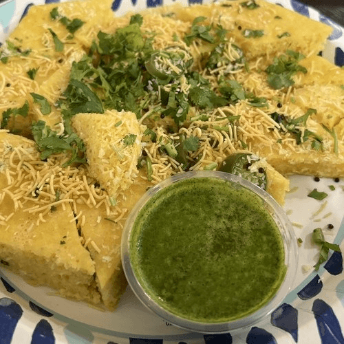 Steamed Besan cakes tempered with mustard seeds, sesame seeds and cilantro