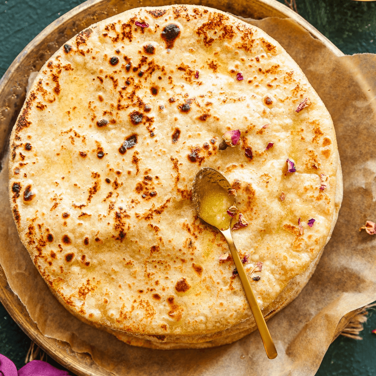 Sweetened flatted bread with Cardamon, Nutmeg and Mace served with Ghee.