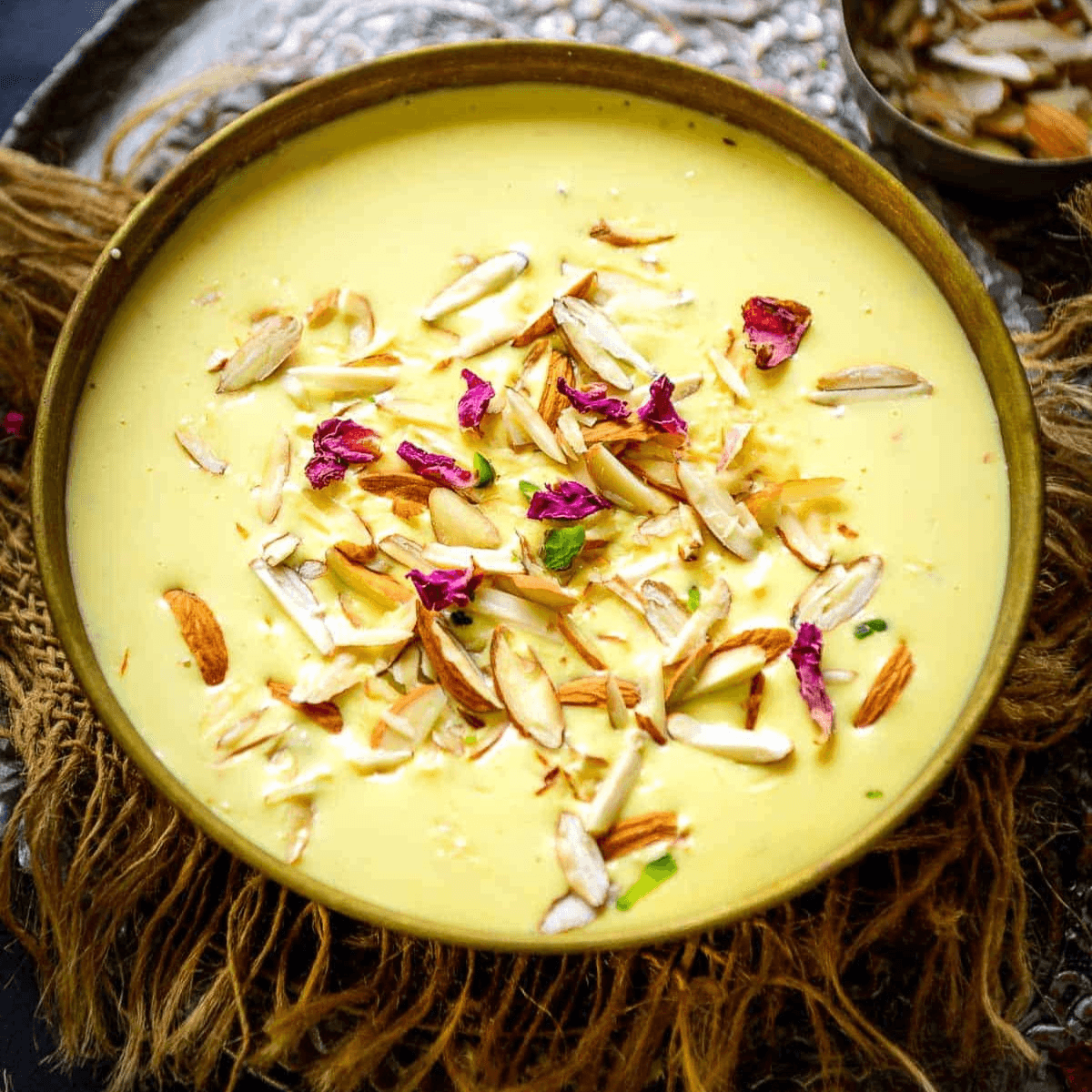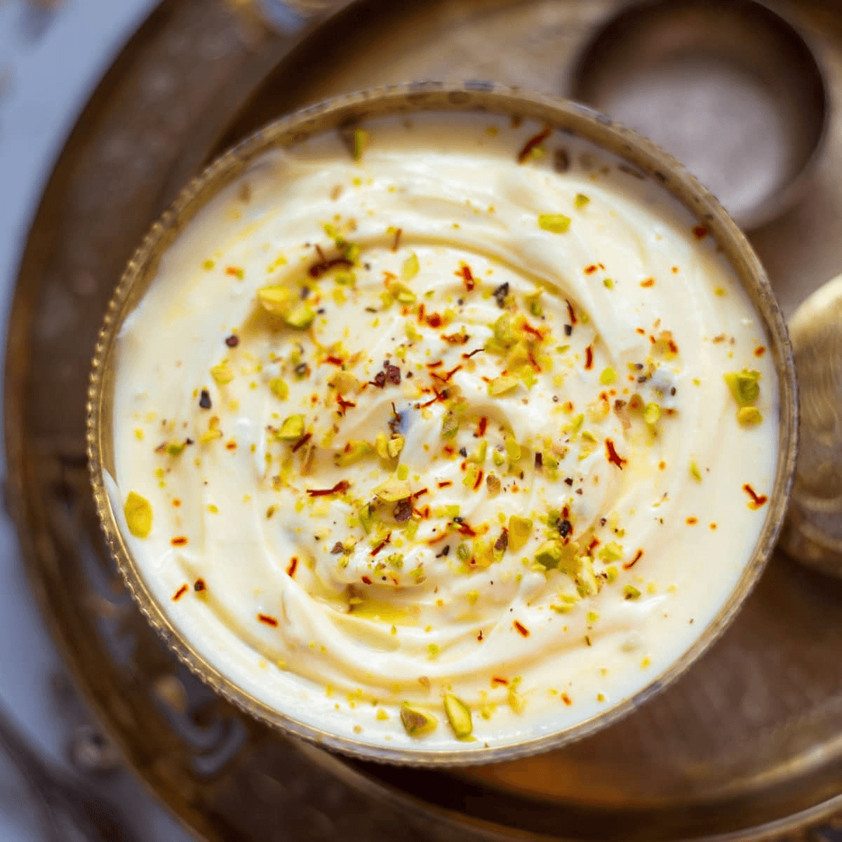 Thick Sweet yogurt with Cardamom and Saffron flavour.