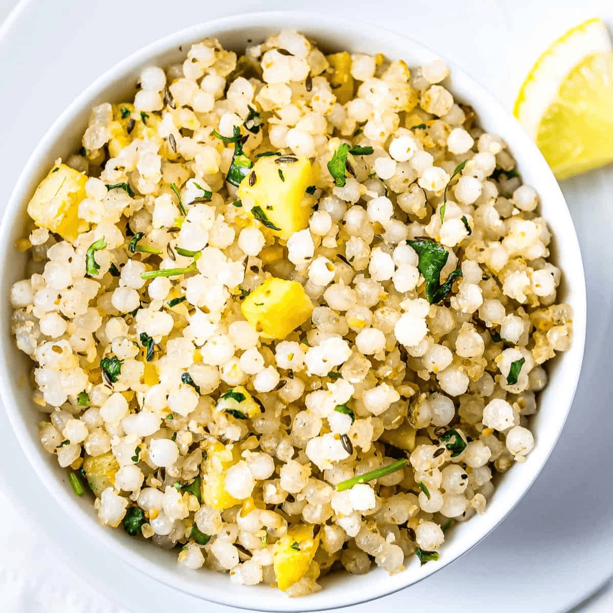 Tapioca pearls, Peanuts and Spices. Comes with plain yogurt on the side.