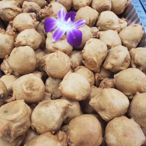 Traditional crispy, deep-fried, disc-shaped, sweet and spicy snack.