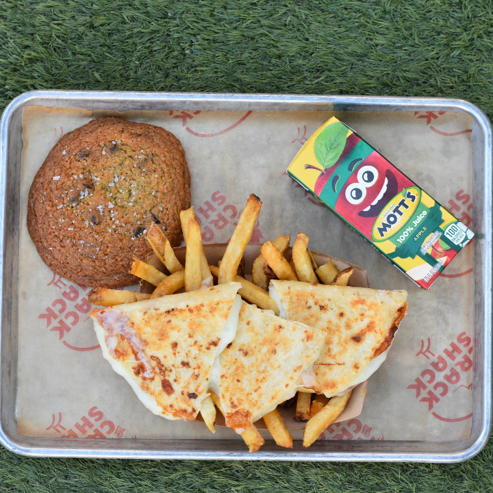 Flour tortilla and Oaxacan cheese, choice of carrots or petite fries + a cookie & a kid's drink