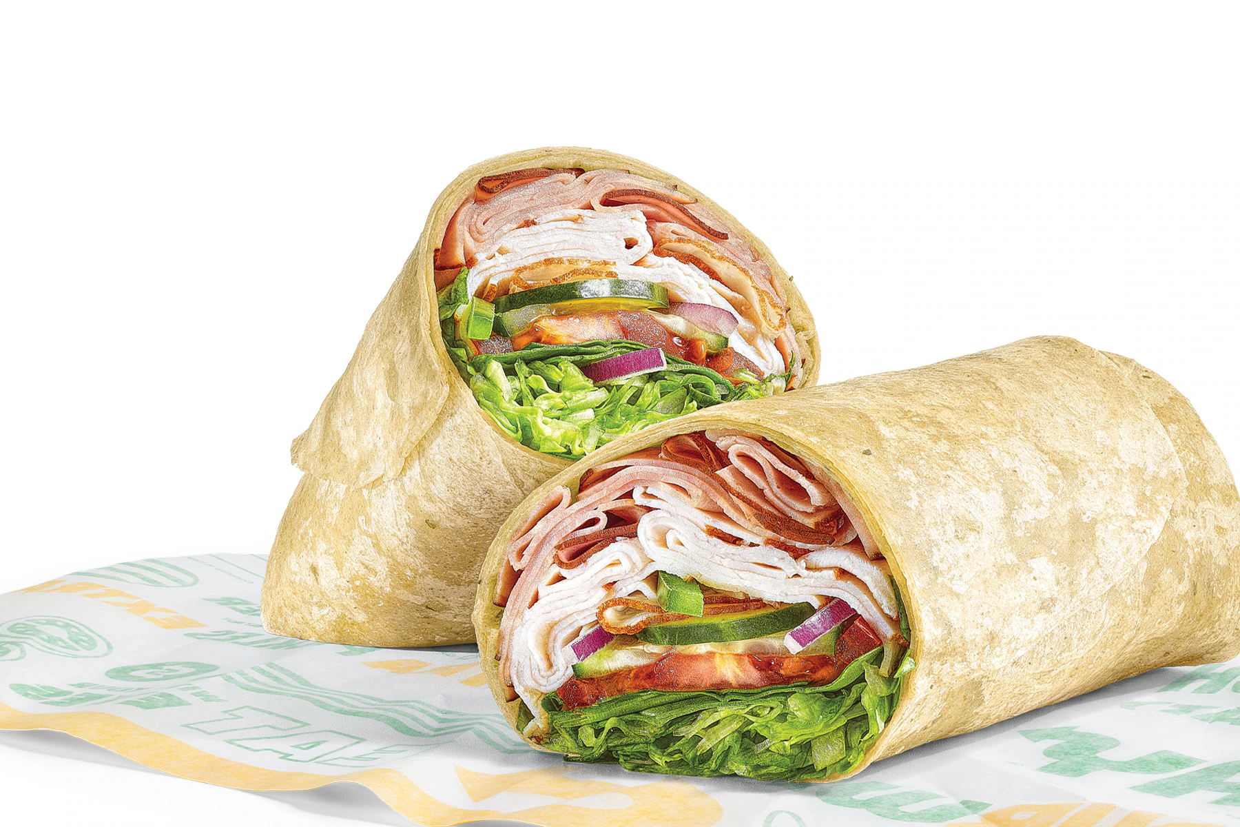 Oven-roasted Turkey, ham, roast beef, American cheese, lettuce, tomatoes, onions & mayo, wrapped in tortilla.